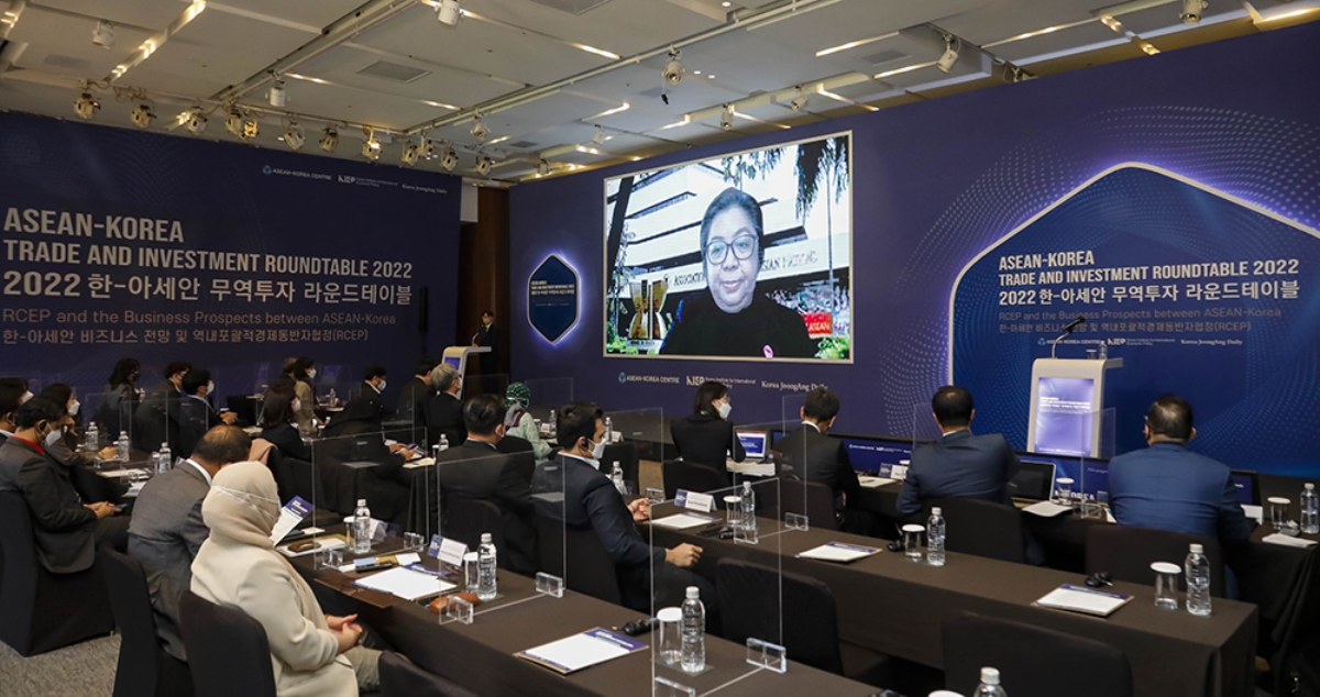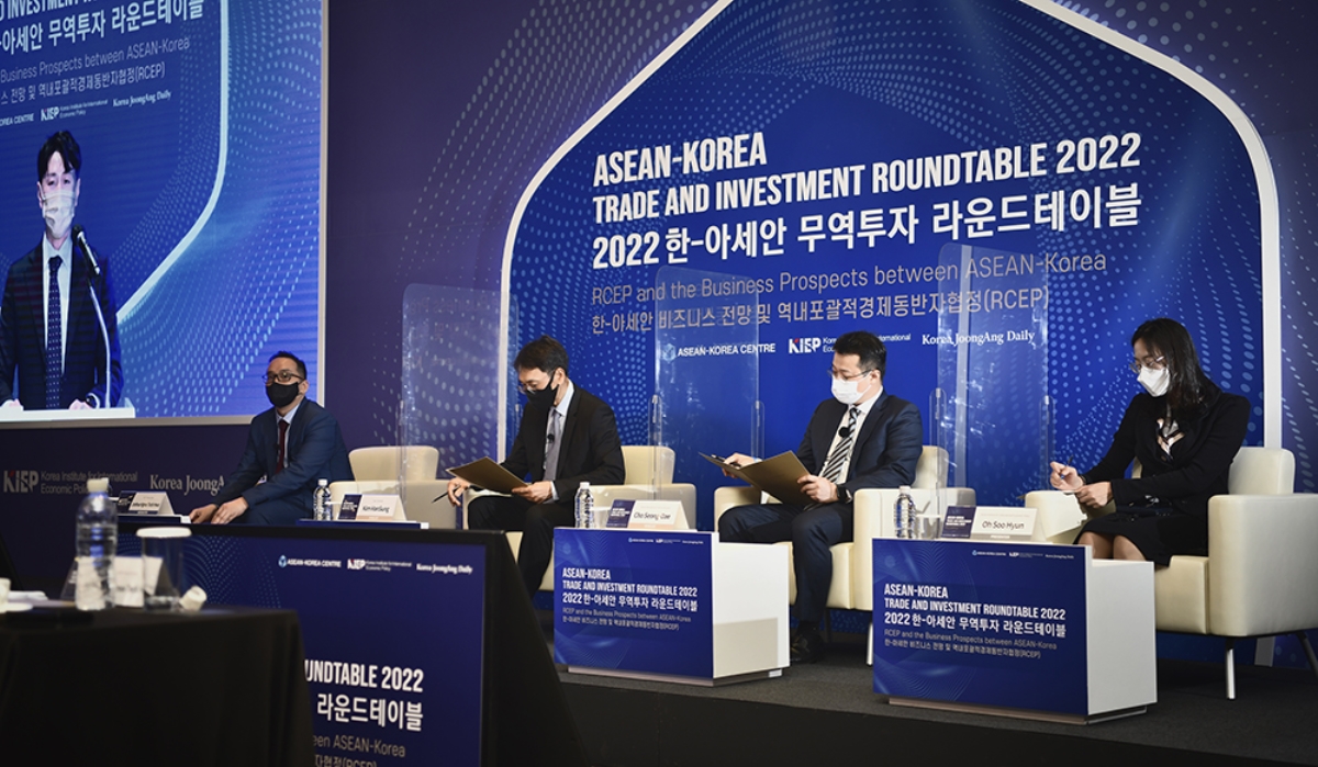 The ASEAN-Korea Centre, Korea Institute for International and Economic Policy (KIEP), and Korea JoongAng Daily hosted the second ‘ASEAN-Korea Trade and Investment Roundtable 2022’ on April 20th, 2022, under the theme of Regional Comprehensive Economic Partnership (RCEP) and the Business Prospects between ASEAN-Korea. The event took place in a hybrid format where it was also live streamed through the ASEAN-Korea Centre’s YouTube channel (http://www.youtube.com/akcsns).