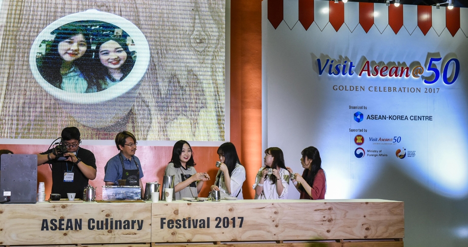 The ASEAN Culinary Festival 2017, hosted by the ASEAN-Korea Centre with the support of the Association of Southeast Asian Nations (ASEAN) and Ministry of Foreign Affairs of Korea, was a key contributor to spreading the word among Koreans about the favorite dishes of 10 ASEAN Member States. Held in conjunction with 32nd Korea World Travel Fair 2017, the Festival ran from June 1 to 4 at Hall B of COEX. The Festival was organized to commemorate the ASEAN-Korea Cultural Exchange Year in 2017 and the Visit ASEAN Year 2017 (Visit ASEAN@50: Golden Celebration). The Festival introduced 20 popular dishes and coffee/tea of ASEAN countries. Also, the visitors were also given the opportunity to experience ASEAN culture through the Barista Shows and ASEAN performances.