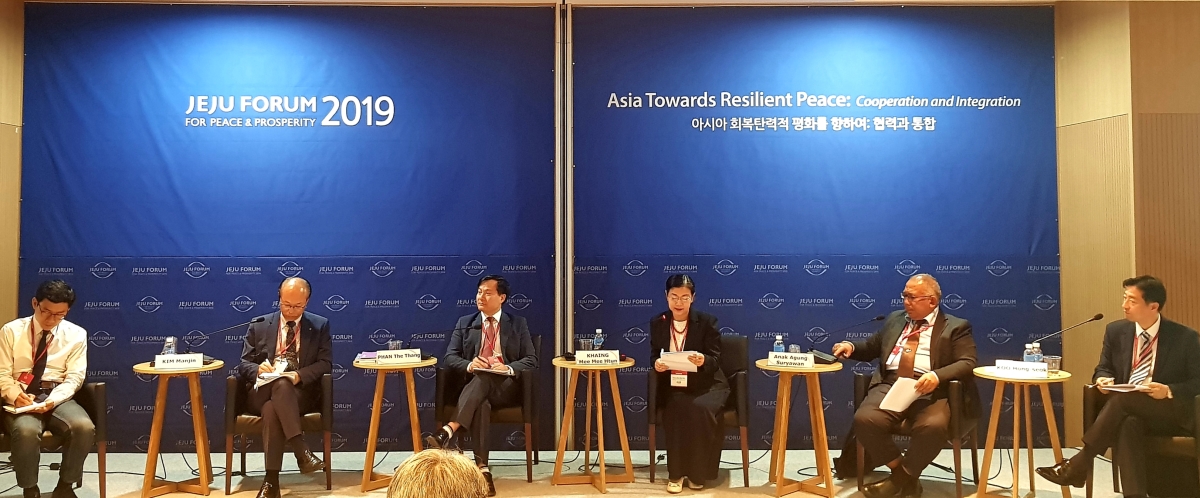 The ASEAN-Korea Centre participated in the Jeju Forum for Peace and Prosperity 2019 hosted by the Jeju Peace Institute between 29-31 May. During the Forum, the Centre made presentations in the New Southern Policy Cluster sessions. In the session titled “Economic Aspects of the New Southern Policy’, Secretary General Lee Hyuk delivered a presentation on the growing importance of ASEAN-Korea economic cooperation and how the ASEAN-Korea Centre is promoting this partnership.