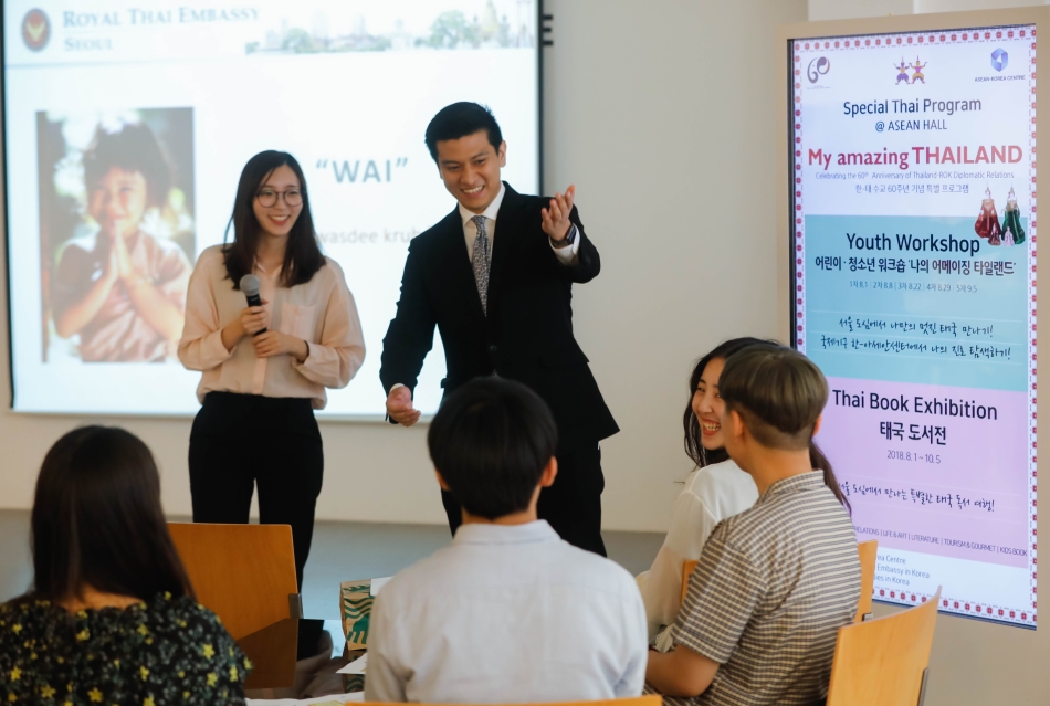 The ASEAN-Korea Centre organized the Youth Workshop and the Thai Book Exhibition under the theme of ‘My Amazing Thailand’ at ASEAN Hall (8th floor, Press Center building) in Seoul in celebration of the 60th anniversary of diplomatic relations between Thailand and Korea. Both events are supported by the Royal Thai Embassy and the Association of Thai Studies in Korea.