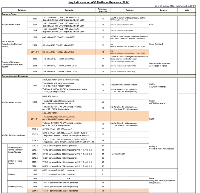 Key Indicators on ASEAN-Korea Relations (2015.2)