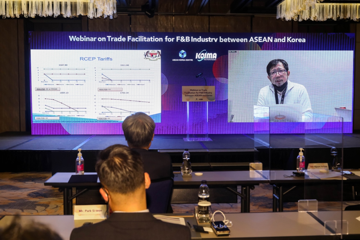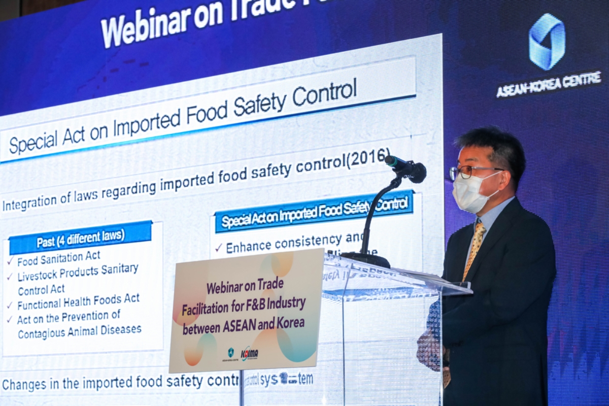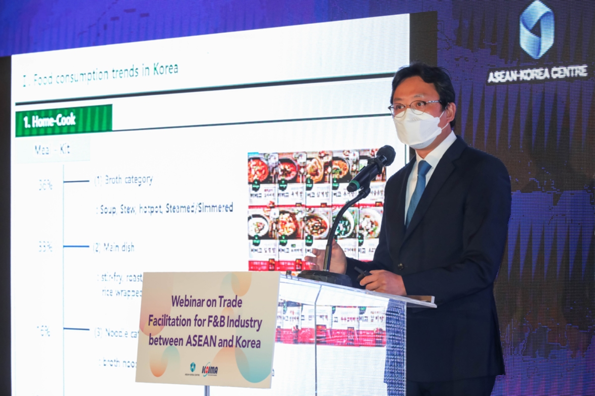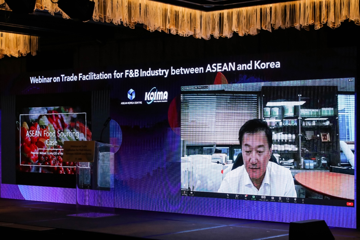 한-아세안센터는 10월 27일(수) 한국수입협회와 공동으로 「한-아세안 식품분야 무역활성화 세미나」를 개최하였다. 이번 행사는 정부의 사회적 거리 두기 지침에 따라 온라인으로 진행되었으며 한-아세안센터 유튜브 채널을 통해 생중계되었다.