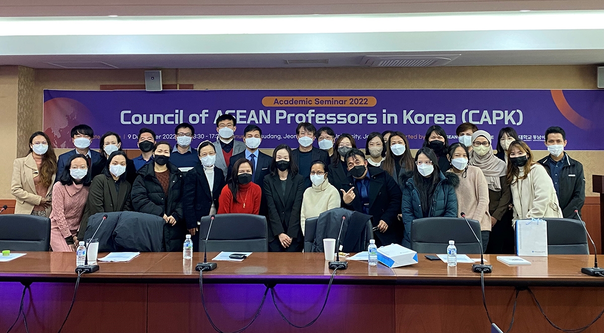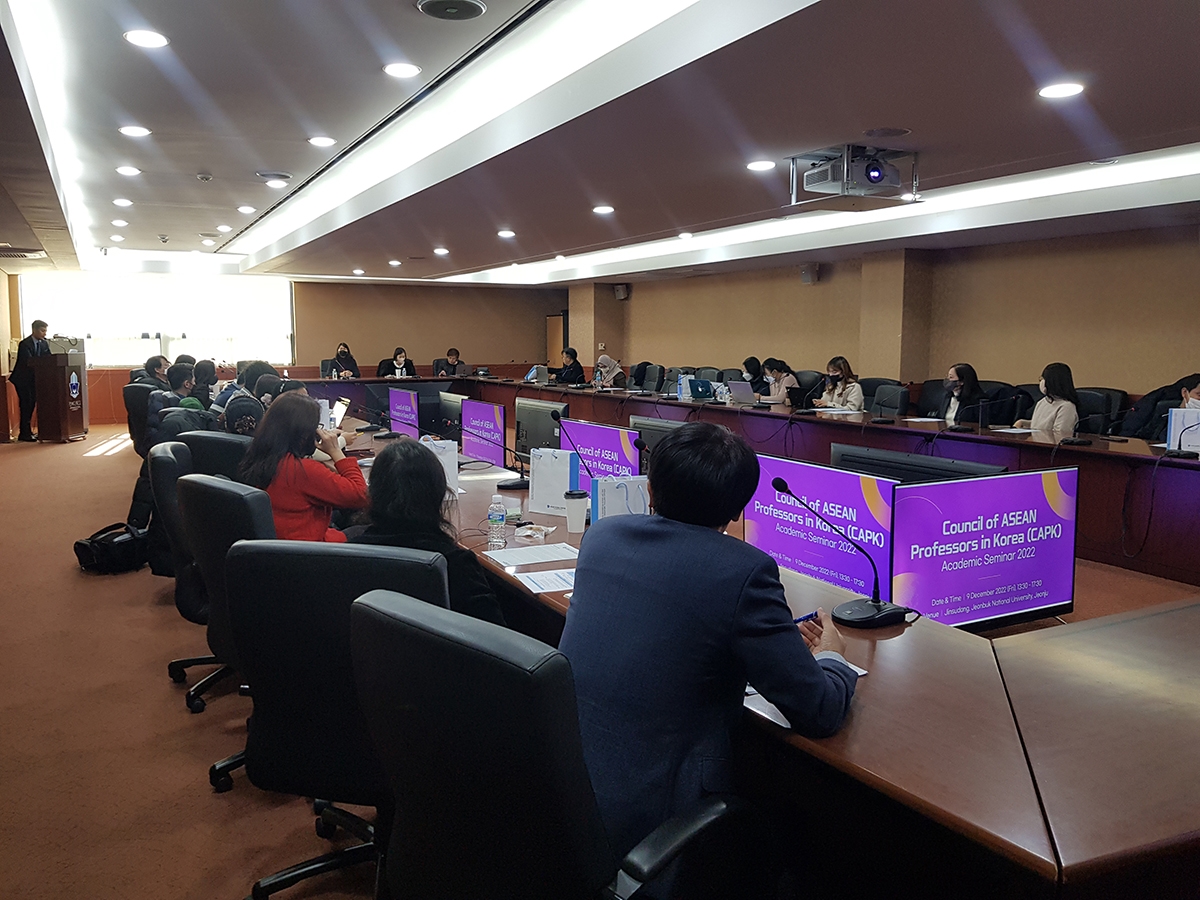한-아세안센터는 12월 9일 한-아세안 협력을 주제로 “2022 주한아세안교수협의회(CAPK)* 학술 세미나”를 전북대학교 동남아연구소와 공동으로 지원했습니다.