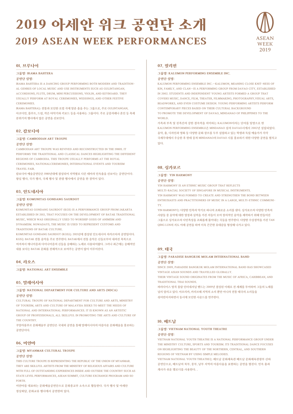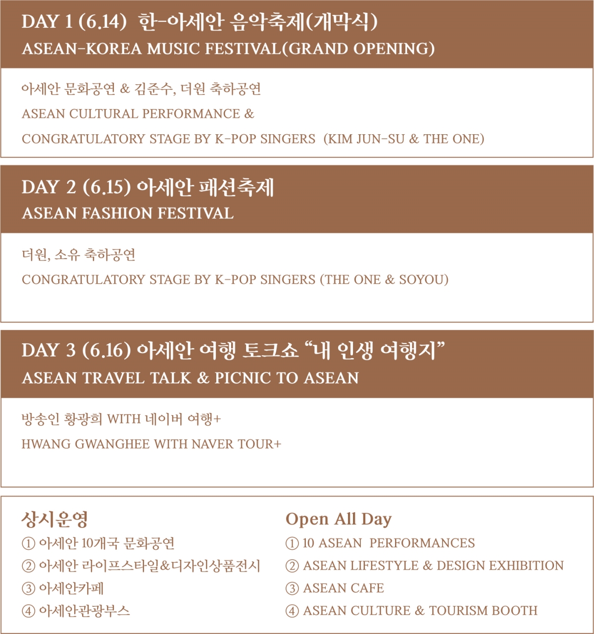 행사 캘린더 주요사업 내용 아세안 홀 아세안 여행