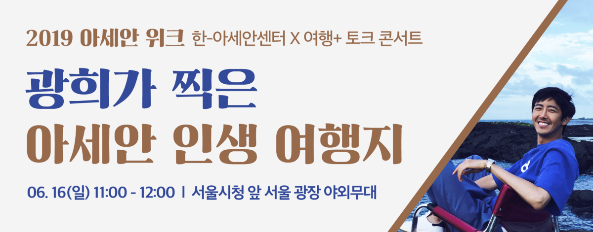 한-아세안센터와 네이버 여행플러스가 함께 아세안위크 3일차 행사, 아세안여행토크쇼 “광희가 찍은 아세안 인생 여행지”에 여러분을 초대합니다.