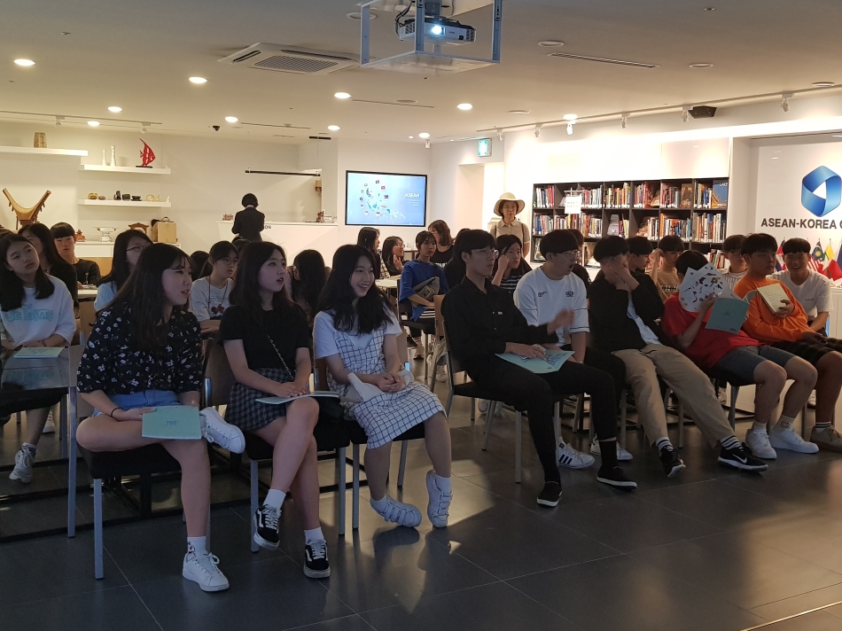 한-아세안센터는 국내 중·고등학생을 대상으로 아세안에 대한 이해와 국제교류협력에 대한 체험학습의 장으로 ‘아세안 스쿨투어 프로그램’과 ‘청소년 견학 프로그램’을 센터내 아세안홀에서 진행하고 있습니다.