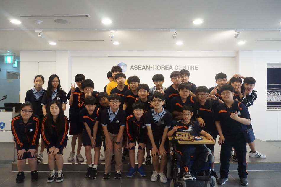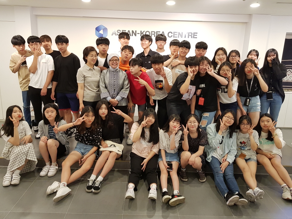 한-아세안센터는 2018년 6월 한달 동안 아세안홀을 방문한 2개 중학교 및 25여명의 대학생들(총 100여명)과 국제기구 진로 체험 및 아세안에 대한 특강, 라운드테이블 세션을 가졌습니다.