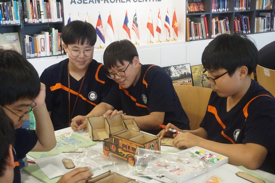 특히 센터는 2018년도 교육부의 ‘꿈길’ 진로체험 인증기관으로 선정되어 국제기구 진로체험과 아세안 이해 교육을 위한 ‘스쿨투어 프로그램’을 연중 시행합니다. 스쿨투어 프로그램은 △ 센터의 아세안 국장과 함께하는 아세안 이야기, △ 국제기구 진로 체험 및 한-아세안센터 소개, △ 아세안 골든벨 퀴즈, △ 공예품 만들기 및 시상식, △ 아세안홀 전시품 감상 등으로 구성되어 있어 참가 학생들에게 아세안의 다양성을 배우며 아울러 국제협력 분야에서의 진로 체험과 현장 학습의 기회를 제공하고 있습니다.