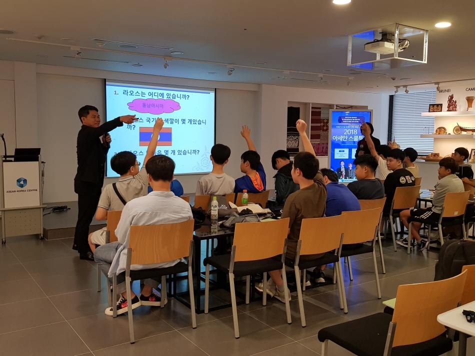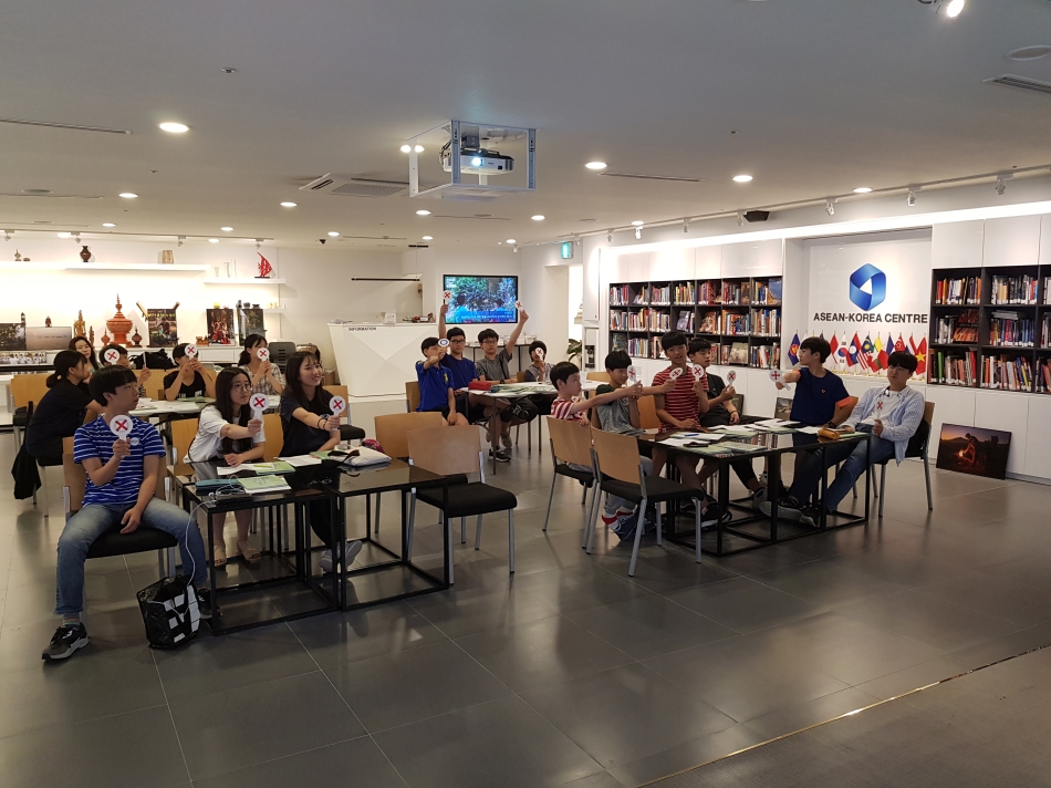 한-아세안센터는 2018년 5월 한달 동안 아세안홀을 방문한 월 한달 동안 5개 중학교, 3개 고등학교 및 50여명의 대학생들(총 320여명)과 국제기구 진로 체험 및 아세안에 대한 특강, 라운드테이블 세션을 가졌습니다.