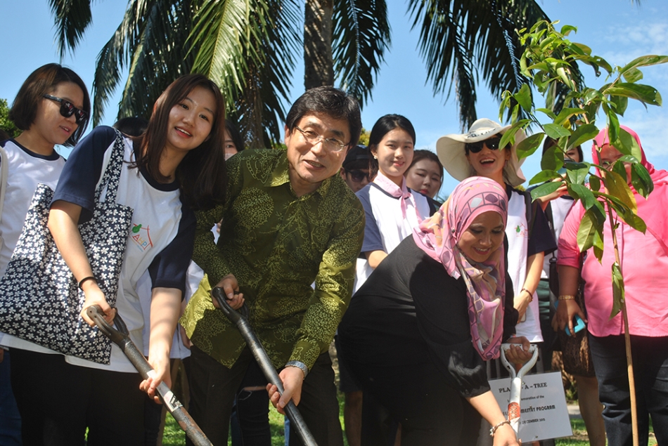 ▲ 나무심기 체험을 하고 있는 김영선 한-아세안센터 사무총장과 한국 대학생들 | 말레이시아 셀랑고르주