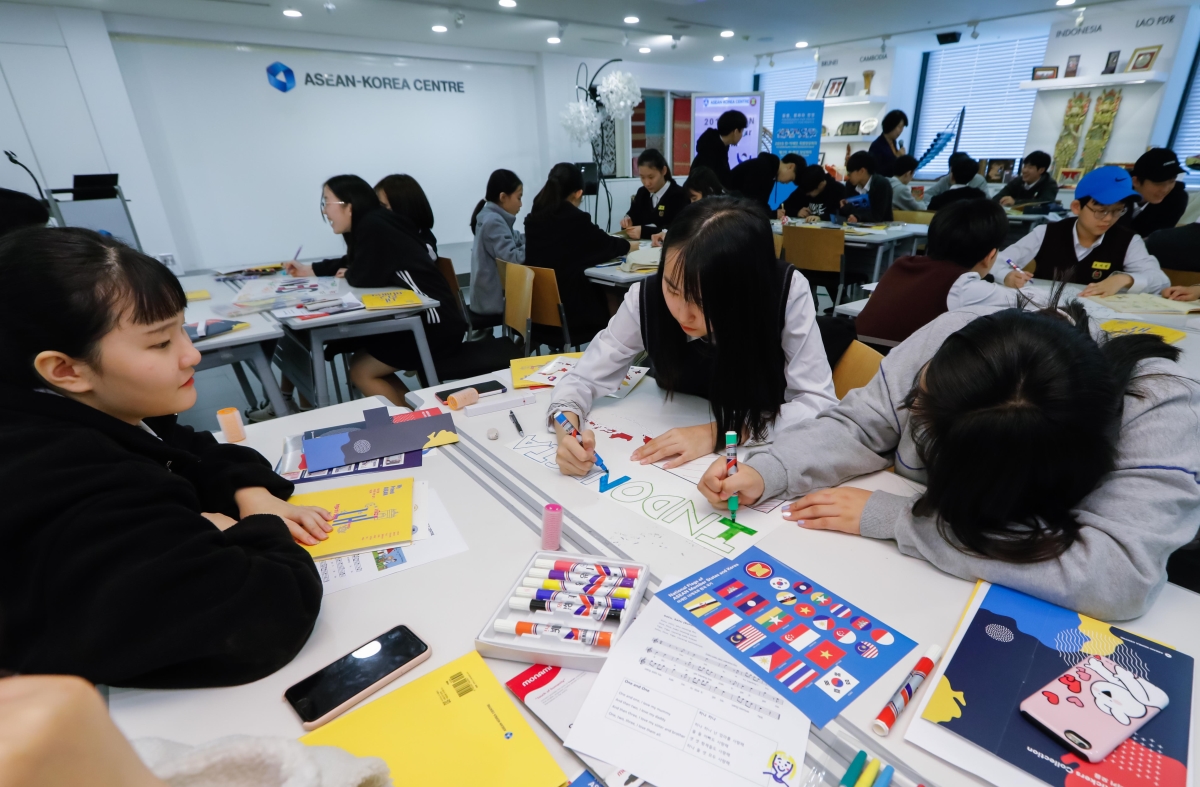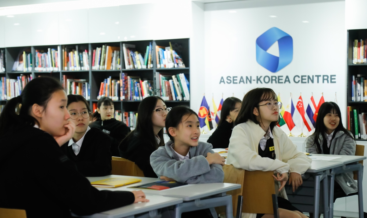 2019년 11월 5일, 서울특별시 서초구 소재 신동중학교 학생 약 30여명이 한-아세안센터(사무총장 이혁) 아세안홀을 방문하여 「아세안 스쿨투어」 프로그램에 참가했다.